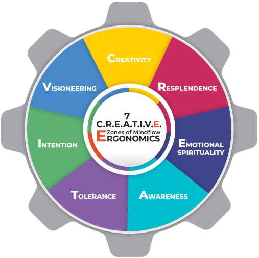 of seven C.R.E.A.T.I.V.E. zones of MindFlow Ergonomics to