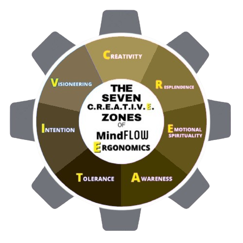 This revolutionary ecosystem of 7 C.R.E.A.T.I.V.E. ergonomic zones of MindFlow Ergonomics has impacted my way of thinking and living the abundant life. I am excited this model will challenge you to increased creativity, joy and overwhelming fulfilment in your life and work as you thrive for excellence.